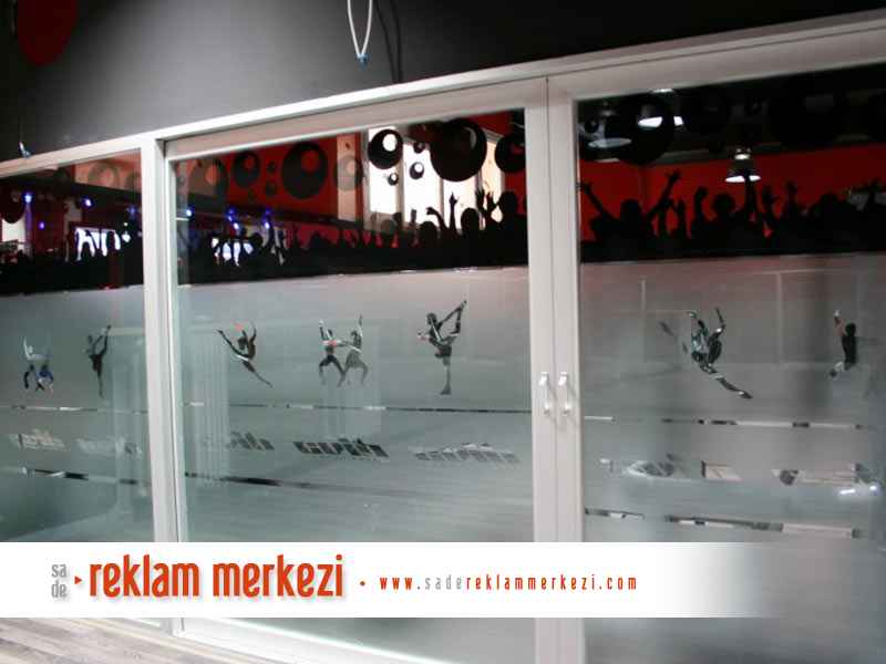 Diva Spor Merkezi, cebeci şubesi için uyguladığımız, fitnes salonunu body salonundan ayıran camların şekilli buzlu folyo ve siyah folyo larla kapatılması.