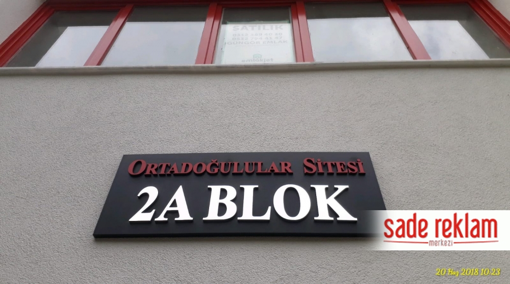 apartman tabelası örneği-kabartma harf örnekleri-kabartma harf tabela fiyatları-harf örneği-ankara apartman tabelası-bina giriş tabelası-sade reklam